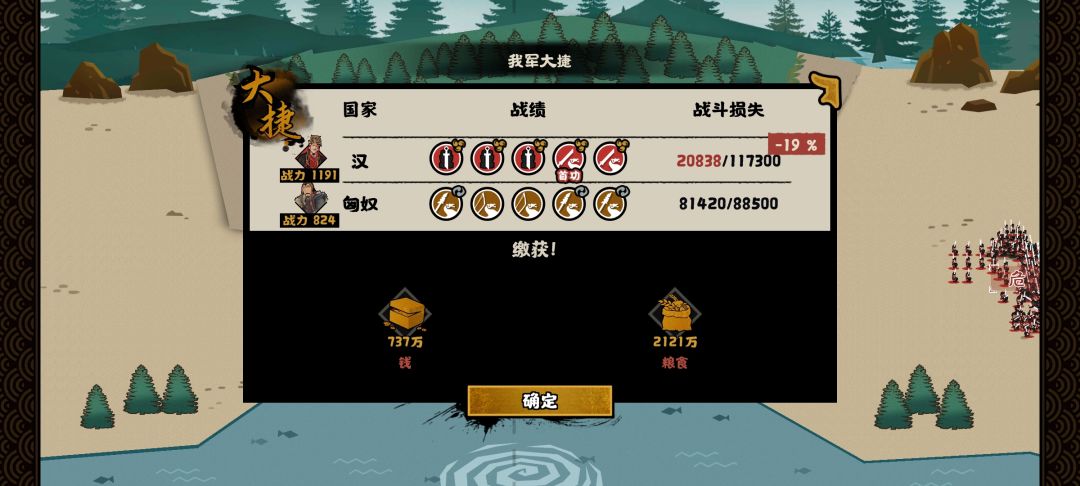 终于也让我战力碾压匈奴了,就想说你也有今天!!!重骑,重步,弩兵,长戟能开全部开满,再带上我西域雇来的特种部队赢麻了。哈哈哈哈😃😃😃