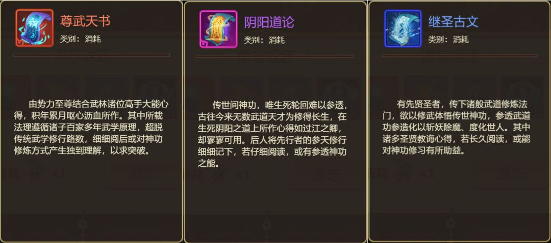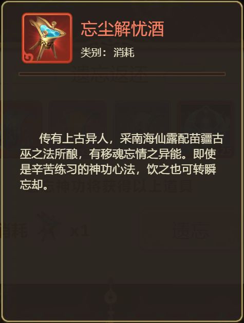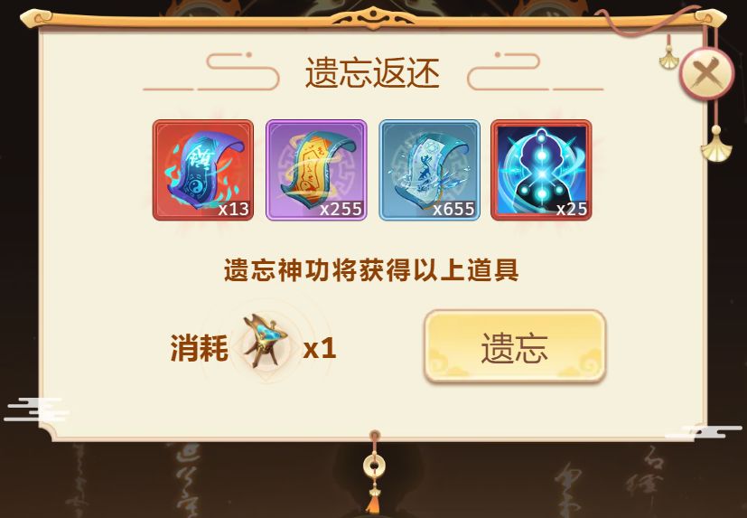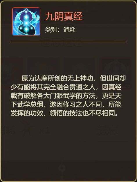 <使用该道具,可遗忘神功,并返还养成所消耗的材料>