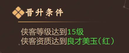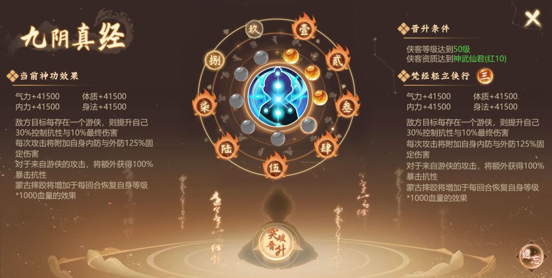 2.侠客的等级与资质,是晋升神功的前置条件