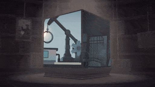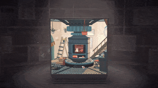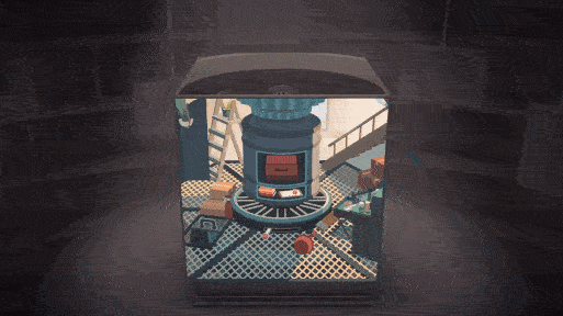 游戏的全部场景只有一个“平平无奇”的立方体小盒,每个面都展示着不同时空的场景,焚烧中的城市、运转中的马戏团在细微之处总有几处,在特定角度下相互贴合就能组成新的物件,推动游戏流程前进。