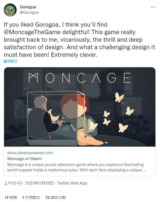 《笼中窥梦》由二人团队开发而成,最初只是大学毕设作品,在Demo阶段就受到了《画中世界》与《时空幻境》开发者的关注与点拨,并在发售后为游戏的品质表示认可。