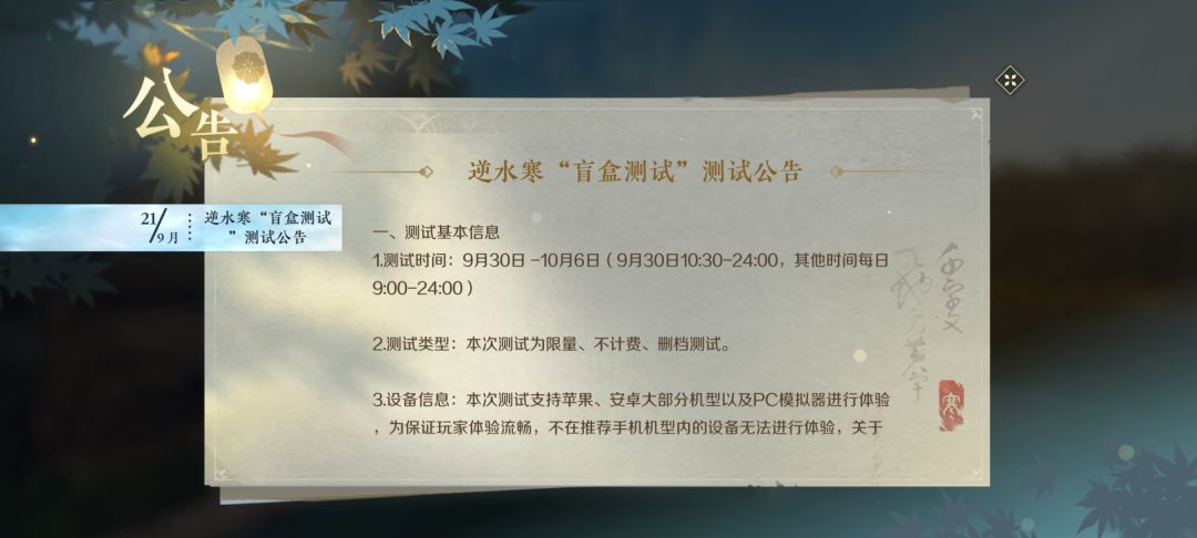 1、测试时间:9月30日-10月6日(9月30日10:30-24:00,其他时间每日9:00-24:00)