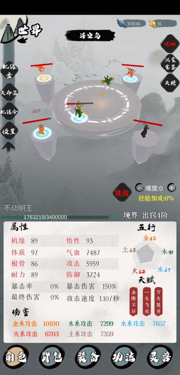 或许带 暴击戒指➕火功法➕暴击刀/吸血刀 能凹过2-3,但懒得凹了,等出窍6直接平推