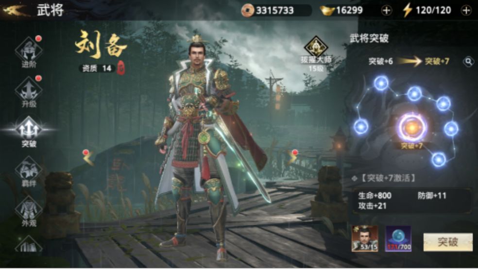 武将带来的战力是最为直观的收益,直接加在总战力上。在培养武将的时候这里有一个小技巧,我们在前期没有必要直接选择资质16以上的红将进行培养,可以选择刘备这种基础武将,这些基础武将前期比较容易获取,突破起来也非常的轻松,虽然初始战力降低,但是突破所带来的收益却是非常可观的。