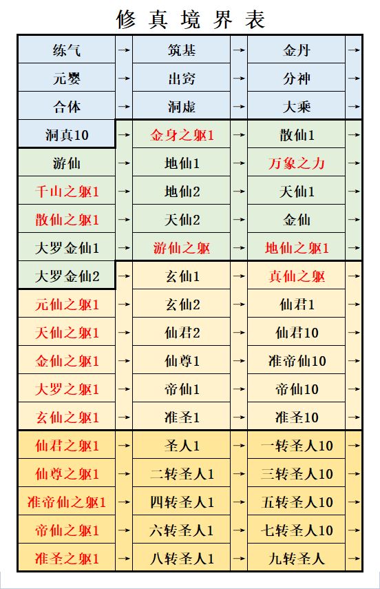 修真境界表