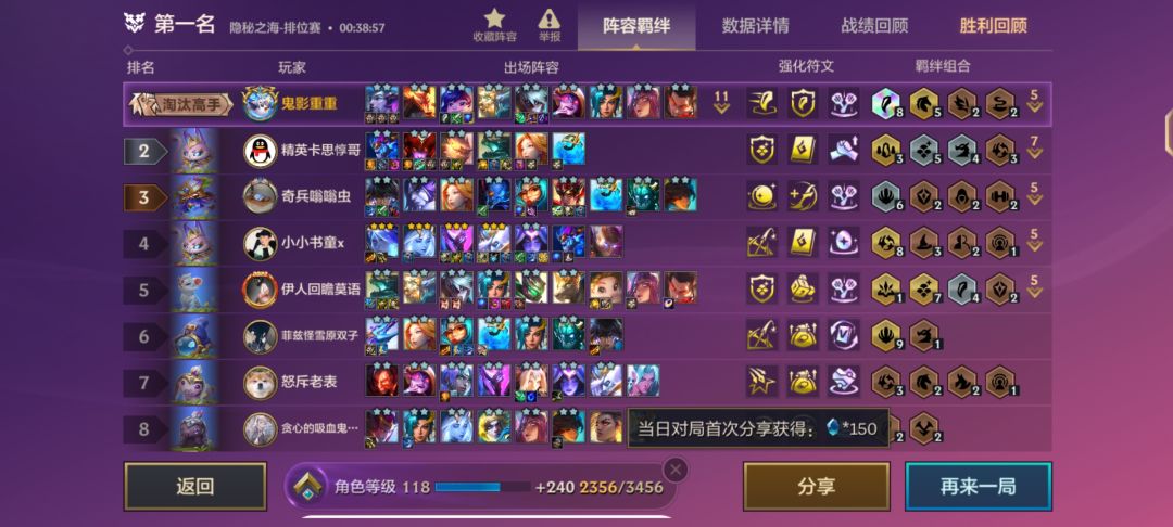 开局鼓舞果断赌神龙努努,这局运气真不错第一轮选秀金铲铲,第二个海克斯神龙转,阵容八神龙轻轻松松又来了诅咒直接补重骑,八神龙四重骑,后期拉九上了五重骑,可惜没重骑转,不然双彩就完美了