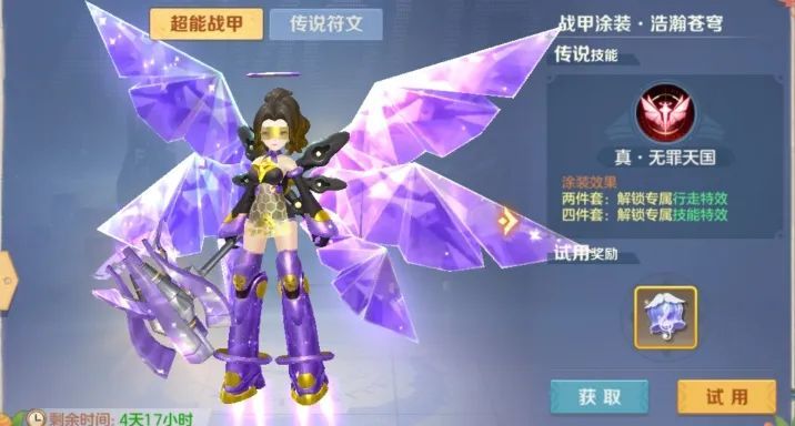 ✦活动内容:试用超能战甲与传说符文,领取风铃奖励~