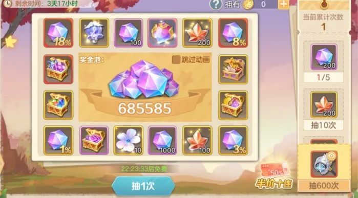 ✦活动内容:首次免费、而后使用暖阳币抽奖,可随机获得以下奖励:钻石雨、时光彩钻、七色灵花、丹枫等。此外还有累计抽奖次数奖励!苍蓝武饰就在这里噢!