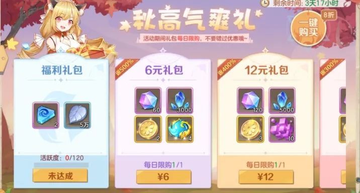 ✦活动内容:礼包每日限购、一键购买享8折~不要错过优惠噢!以及活跃度也能白嫖礼包的!钻石、暖阳币、幻想灵珠、符文精华、纳米结晶、先锋战甲箱II...想买什么买什么~