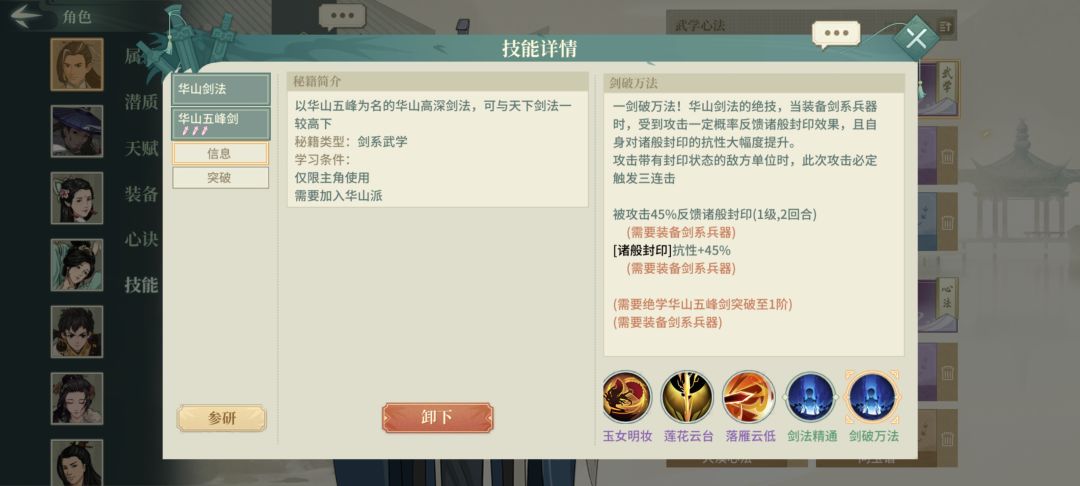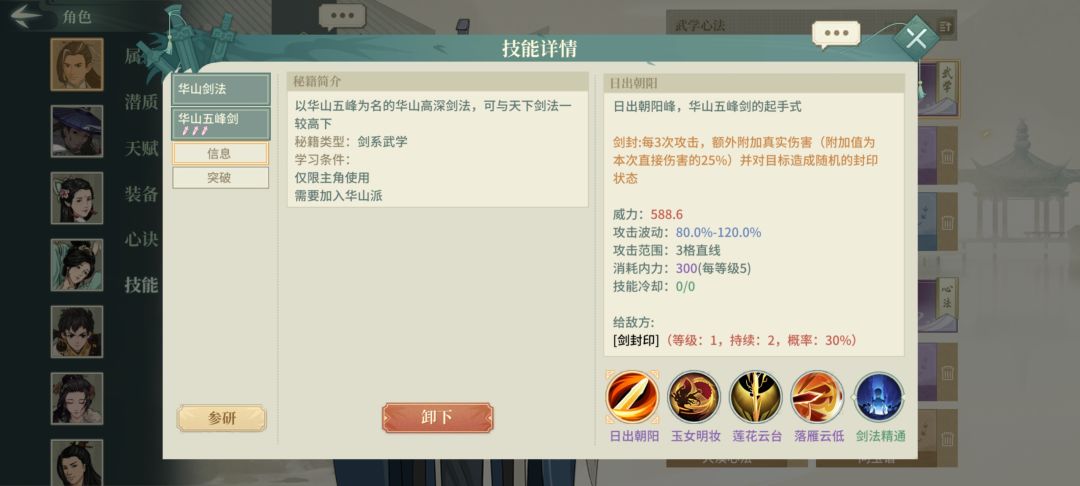 华山剑伤害来源很简单,一个是三动的真伤,一个是负面状态的伤害加成,所以需要两件事:一是能多动,二是叠负面。才能打出伤害。