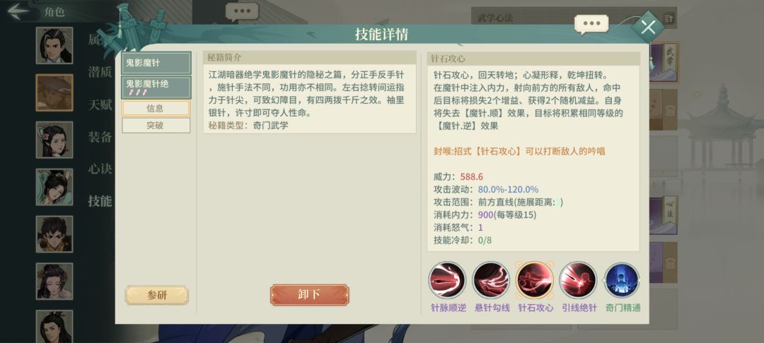 也是几乎照搬,但是主了洗髓保命,扇子也是保命。穷目破风保证一直能在最远处,技能顺序照搬原贴,张月主要作用就是:刮痧,大招,打残局。为什么没有魔针就没法打,一是主角得不到加强就会废,二是削弱对手削弱的。