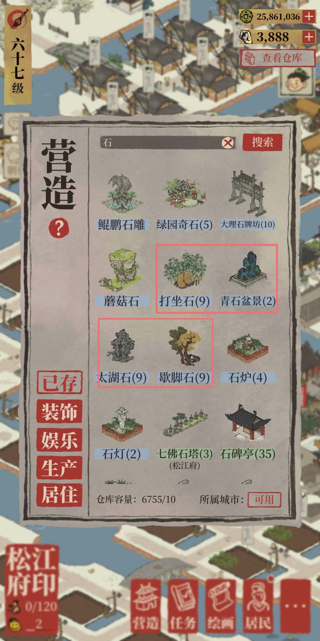 (黄泥、笋子、红蟹、漕运码头材料换或不换石头都可以!防着新城开地时,它找我要)