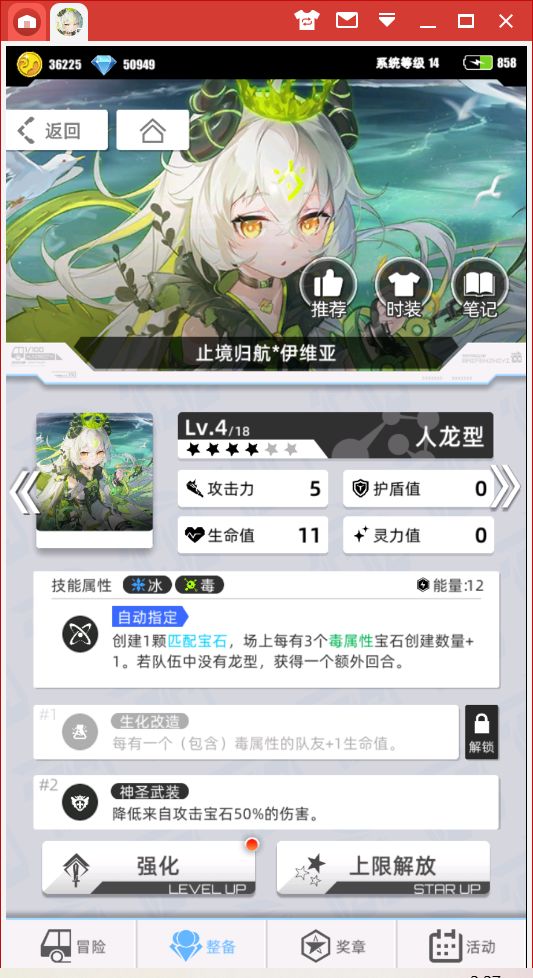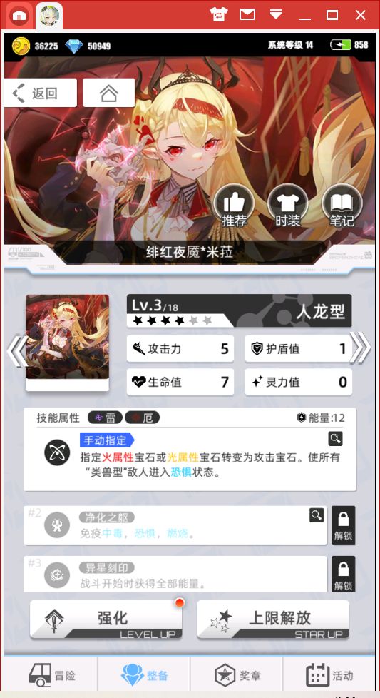 升级需求,仅要求伊维亚等级,生命和护甲可以提高容错率,攻击虽然一般也A不出几次,但总是有帮助的,而灵力直接影响我们的推图速度,可以说升伊维亚是一举多得的,其他几个人不用管。