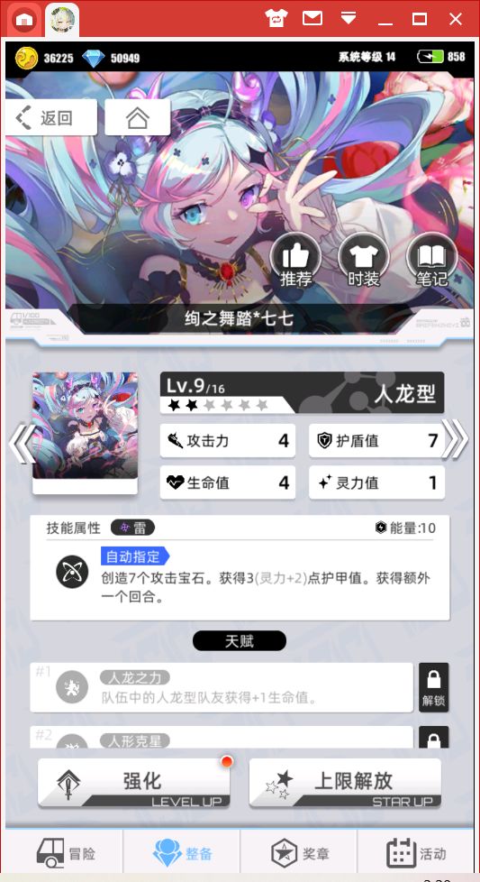 好的,既然这个套路有短板,那么我们就要想办法弥补这个短板,我们经常能在直击队里面看到这张单卡(是胎1,我升了1星变2星了),这张单卡是直击流常用组件,用来提高容错率的,因为可以获得一个额外回合,所以会让队伍的整体流转变得相当稳定,但好巧不巧,她同样也是无限流中无限龙的一个组件。