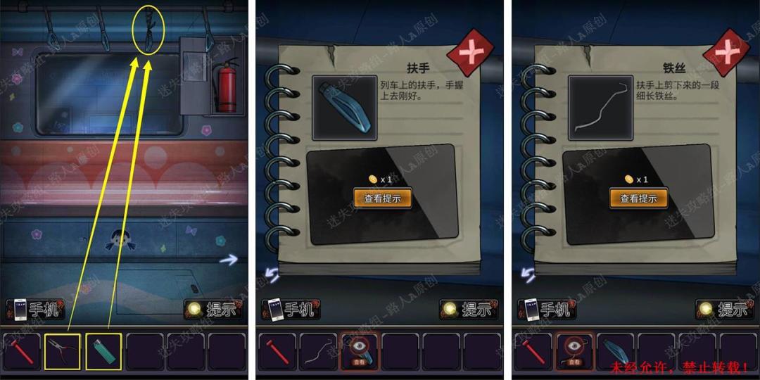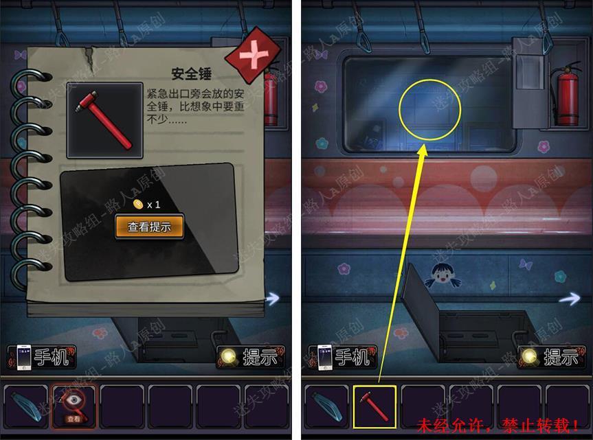 7.组合【安全锤柄】和【安全锤的头部】,用【安全锤】砸开窗户,离开列车。