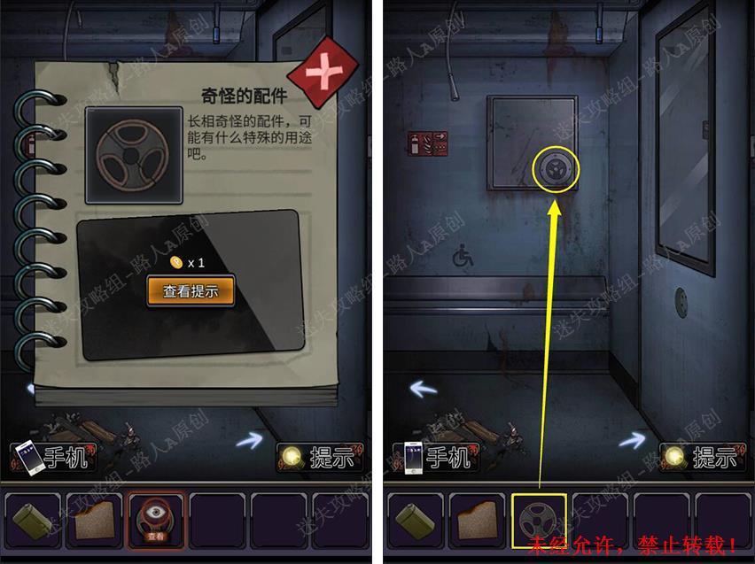 49.组合2个【奇怪的配件】,将【奇怪的配件】放入凹槽,打开柜子得到【扳手】。