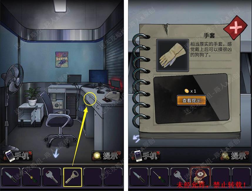 33.用【钥匙】打开抽屉,得到【手套】。