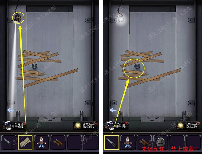 36.用【手套】取得【束光装置】,用【刀子】划开胶带。