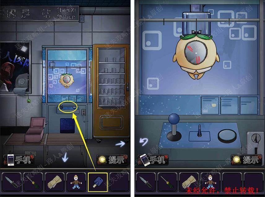 41.插入【钥匙】启动娃娃机,利用摇杆和按钮,控制机器切断娃娃的绳子,得到【娃娃】。