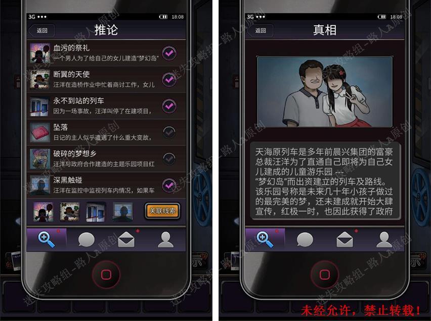 69.查看所有推论,然后关联线索【血污的祭礼】+【断翼的天使】+【永不到站的列车】+【深黑触碰】,查看得到的真相。
