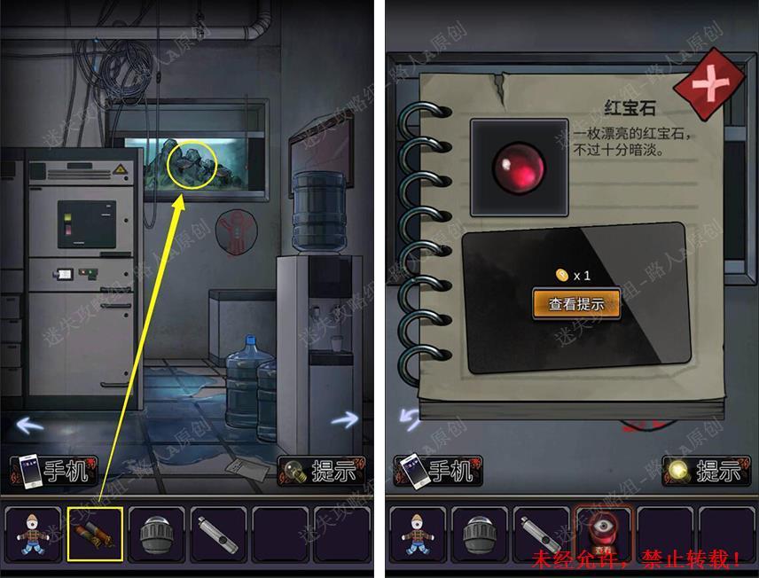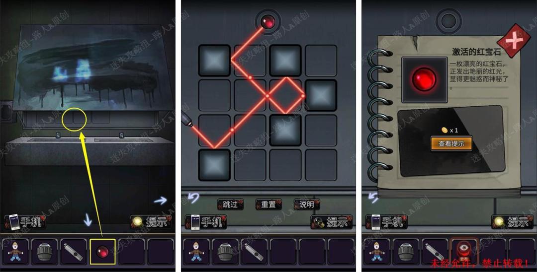 39.掀起镜子,将【红宝石】放入机关凹槽,完成小游戏,取得【激活的红宝石】。