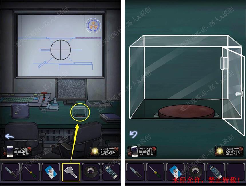 21.用【钥匙】打开玻璃罩,按下红色按钮。
