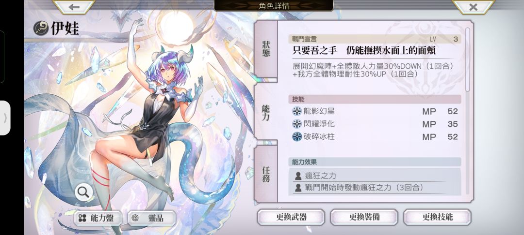 ❗【冰河之纱】我方全体水&晶攻击力25%up(5回合)+hp25%回复