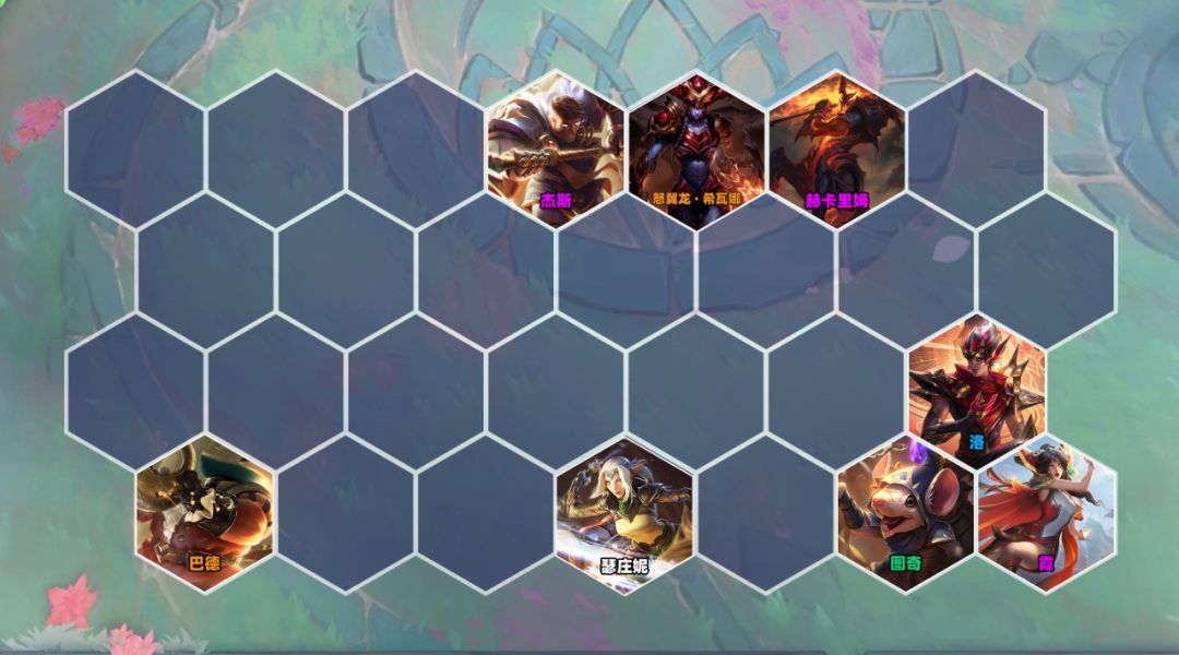 4-5或5-1拉8后,大D找2星霞、人马和杰斯,阵容就算基本成型了,血量健康肯定有分;有龙女的话就先不要猪妹或者巴德,没有龙女的话,就继续用呲呲艾达丝这些卡混搭羁绊过渡,有两星霞一样可以存钱上9的,9级之后再换。