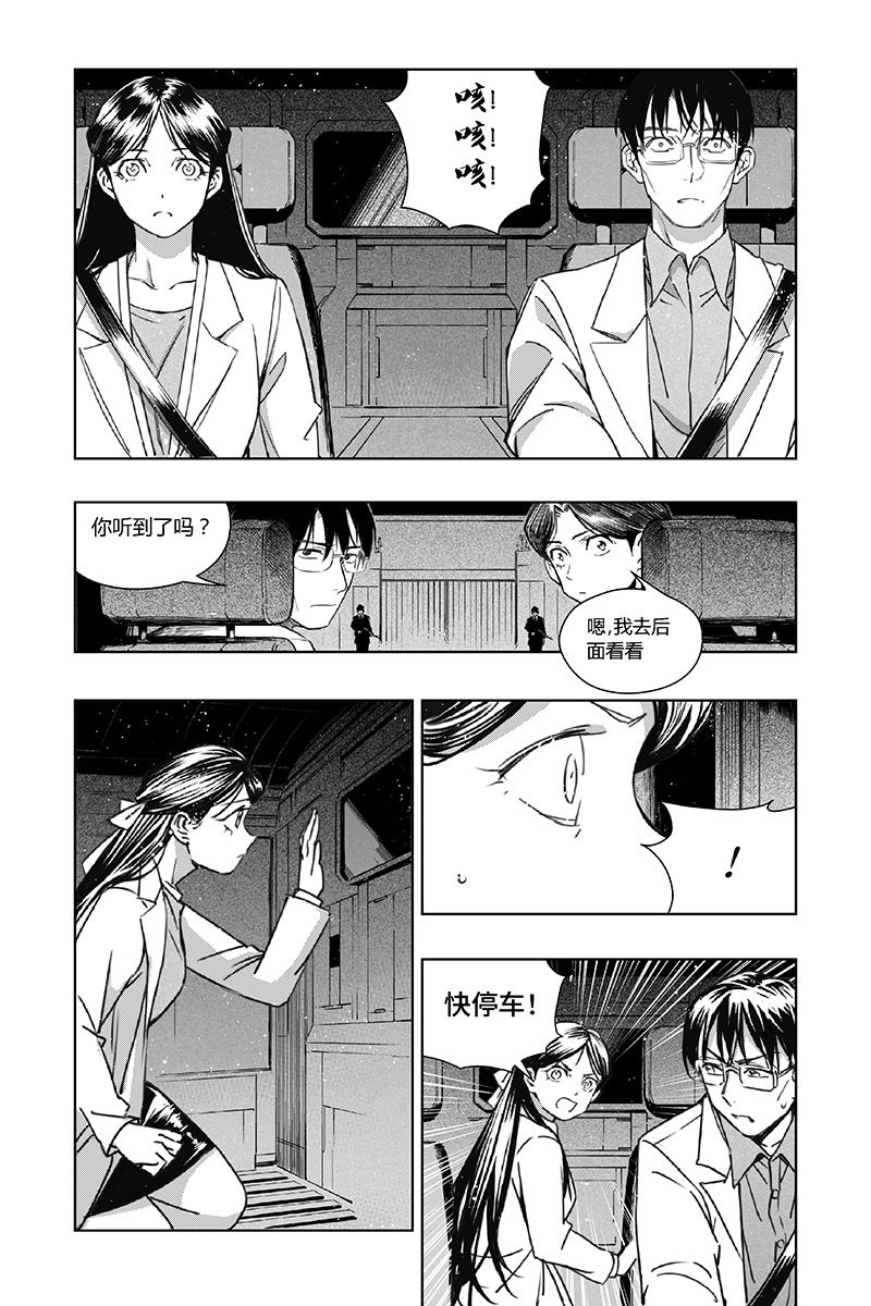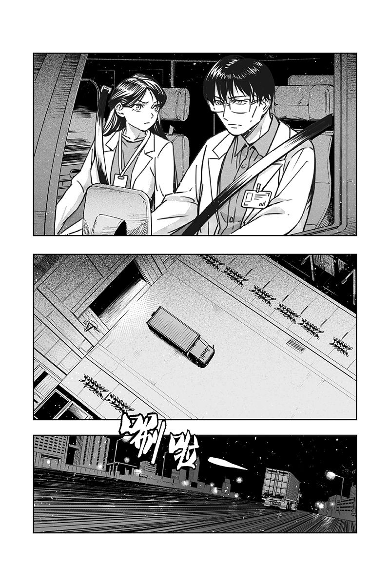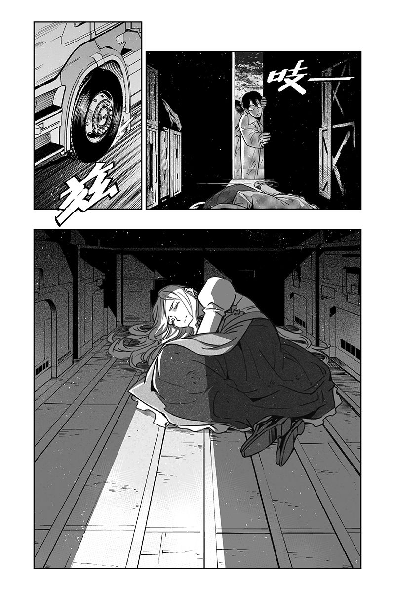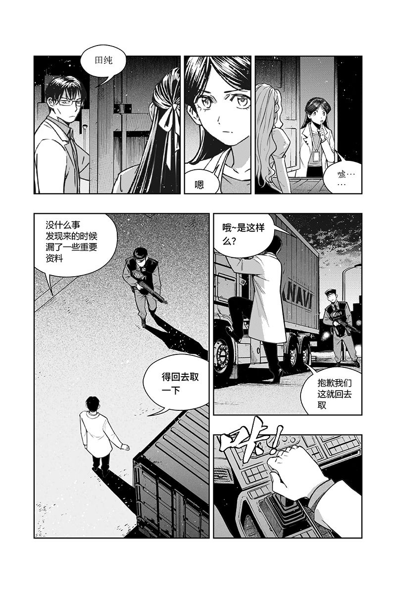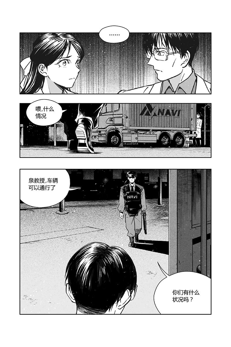 另一边,瑞秋悄悄上了泉纱织父母运送实验器械的车,被两人发现。两人决定保护这个女孩,于是带着瑞秋躲过警卫人员的盘查,离开了实验室基地……