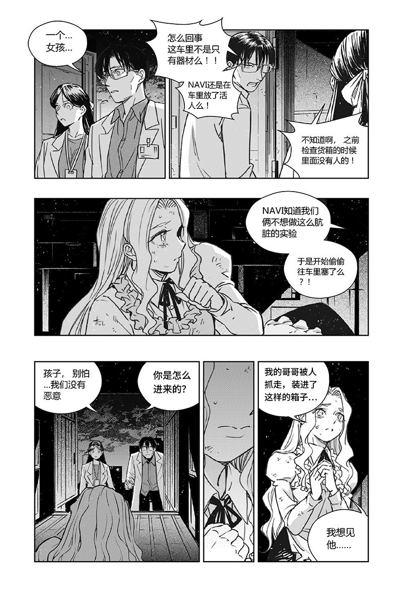 瑞秋的哥哥被带往404实验室。实验器皿里装有奇怪诡异的“怪物”,而身上缠着“眼球”和“触手”的格雷也赫然在列。因药物剂量超过实验体可承受的程度,瑞秋哥哥的心跳停止,实验宣告失败。正当NAVI的上田长官和实验操作人员欲要放弃之时,瑞秋哥哥突然恢复了心跳……
