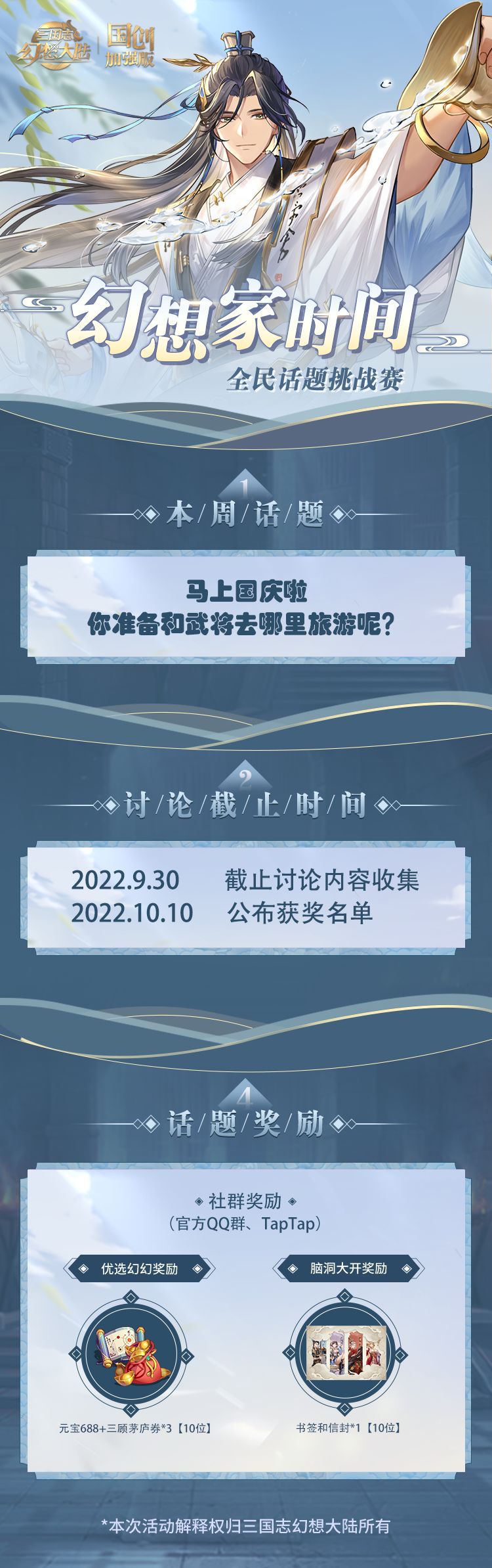【已开奖】幻想家时间 | 你想和武将去哪里旅游呢?