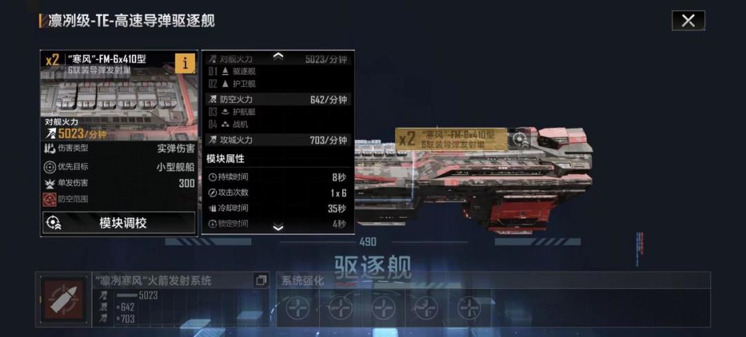 这款驱逐舰面板属性属于是中等水平,双武器锁定速度都比较优秀,均在四秒以内,副武器虽说对空伤害较低,但是对舰依然有1650的DPM,算上主武器的伤害白板就能达到近7000DPM,加满属性后输出还是相当可观的。虽说人口消耗是硬伤,但是以这个输出能力综合考量下来还是凑得上一个中等驱逐舰的水平,但是和澄海比就拉胯不少了。