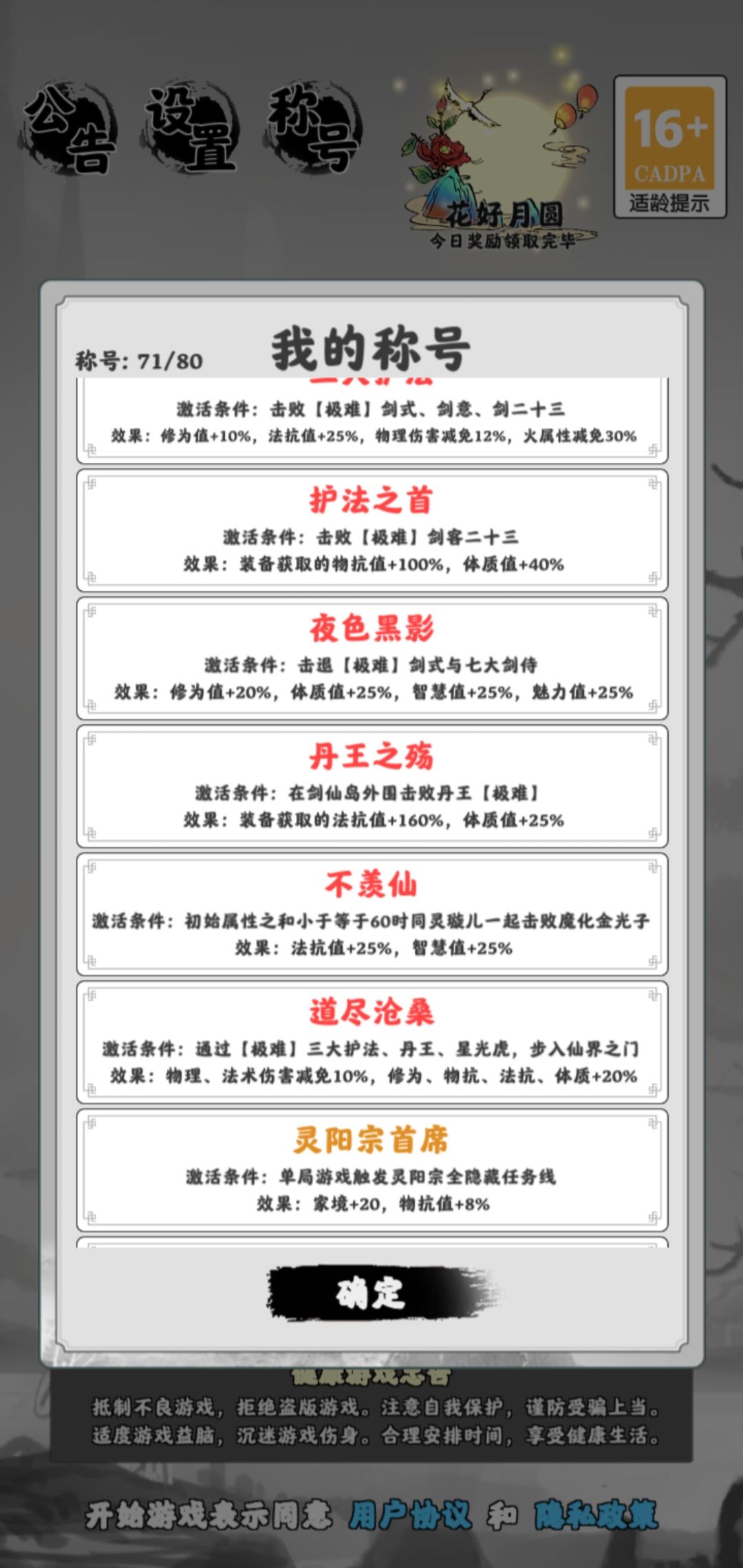 但是丹墨=物抗109 法抗 109 气运35 修为10,七件橙装一件红装。