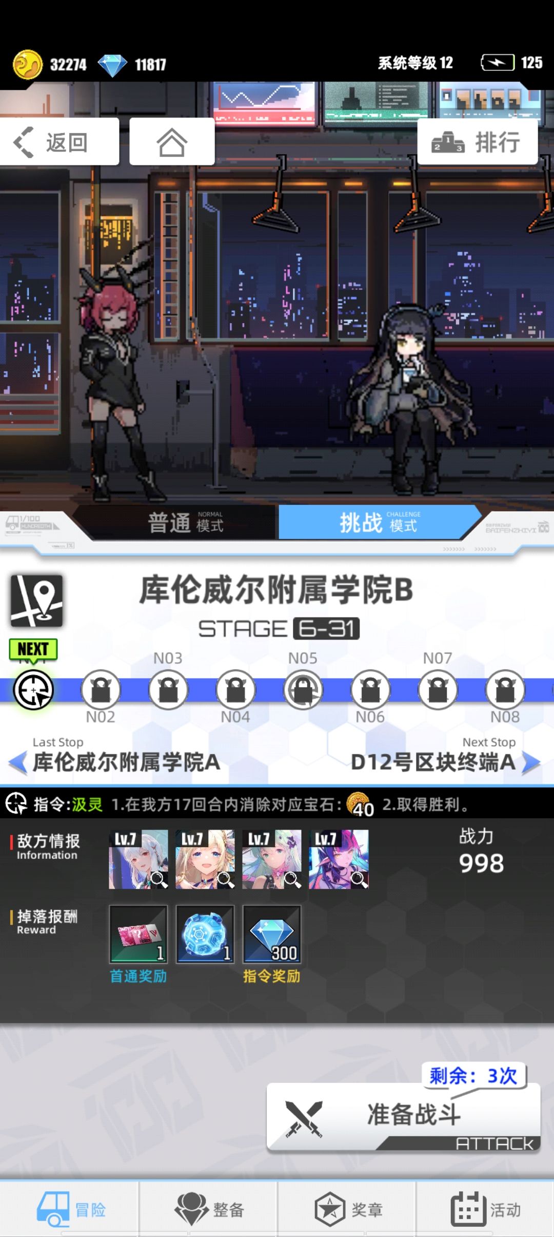 还有2-17也记得刷一下我看了一下挑战模式,就只有这个地方会给三星的到时候用来分解。