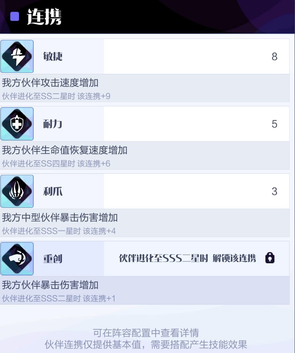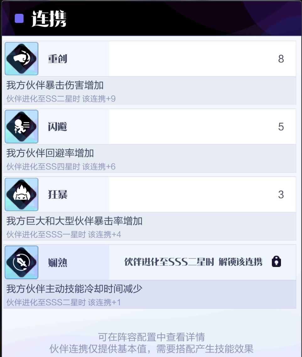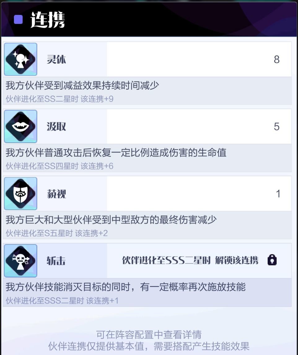 连携当中强力和信仰可以和其他伙伴叠加,先机很强,能抢占先手。