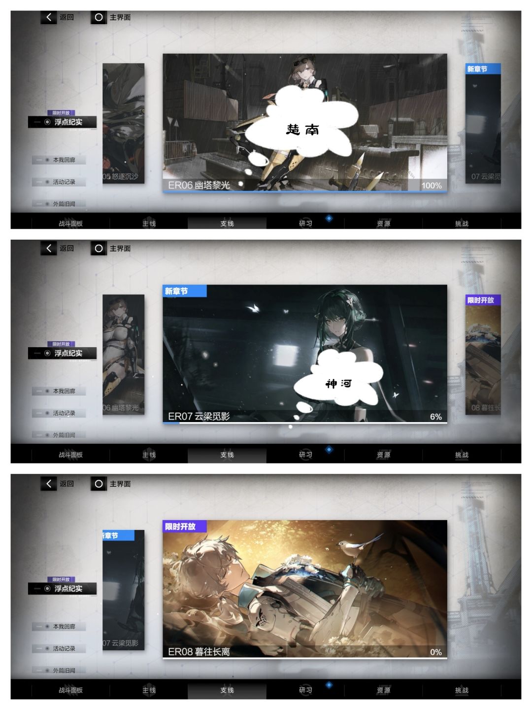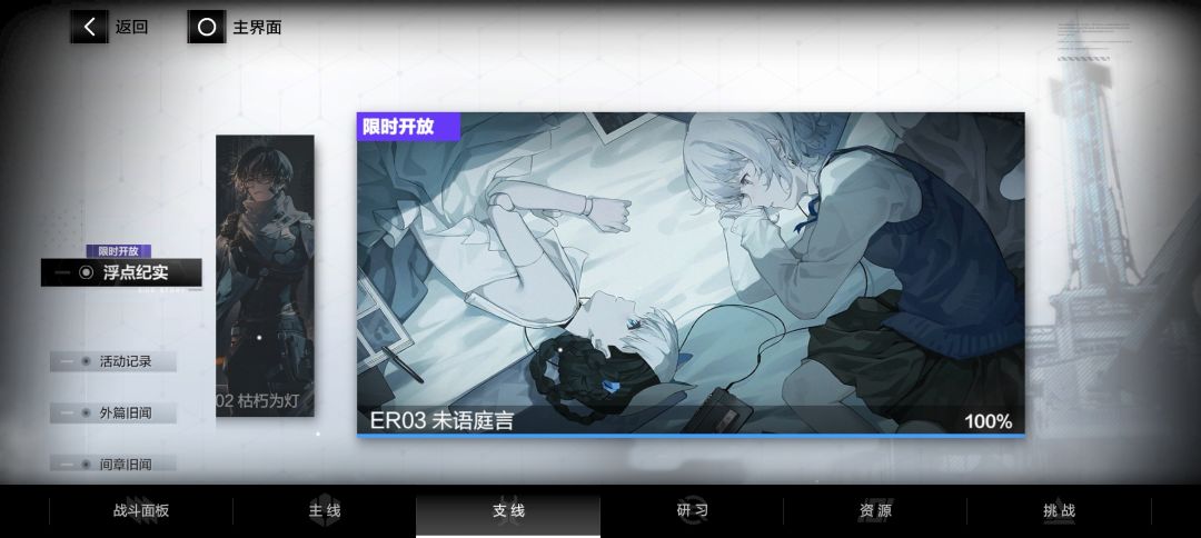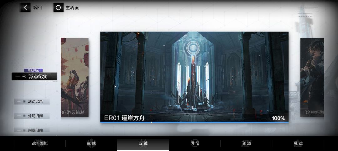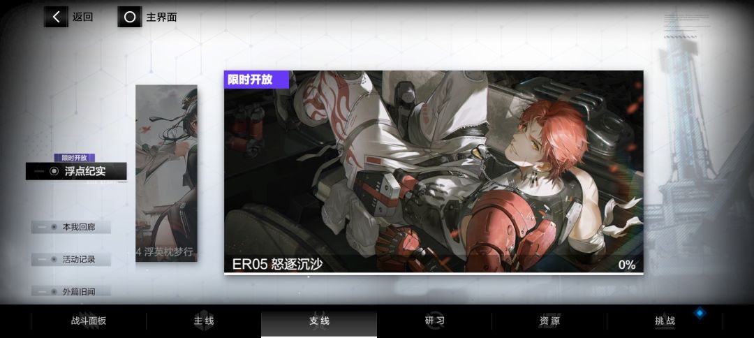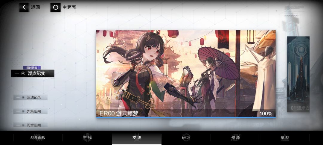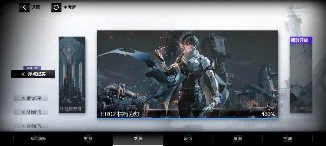 ①支线——间章旧闻中各角色间章随着在下面剧情中出现后进行观看来补充对该新登场角色的了解(间章截止到ER00华钟,后面的角色无间章)