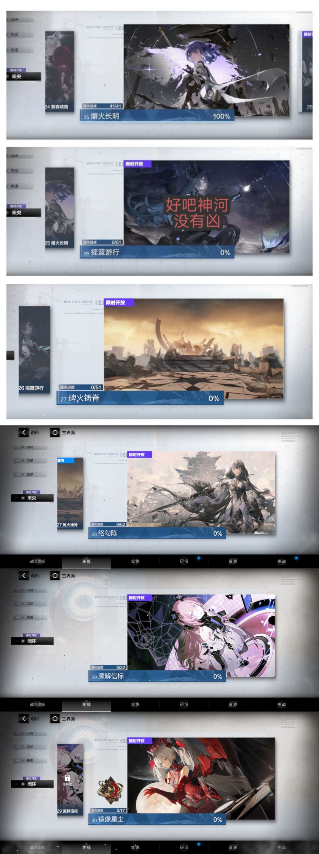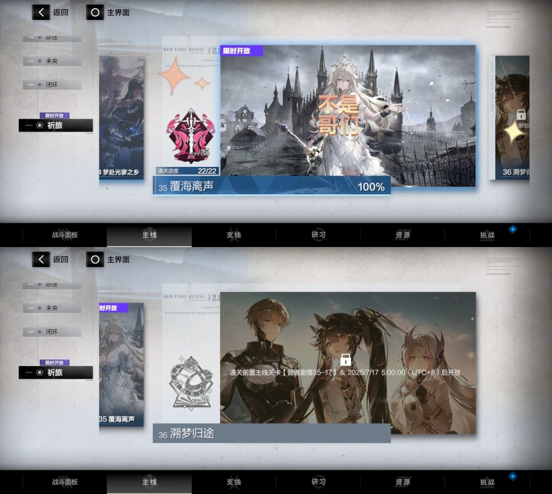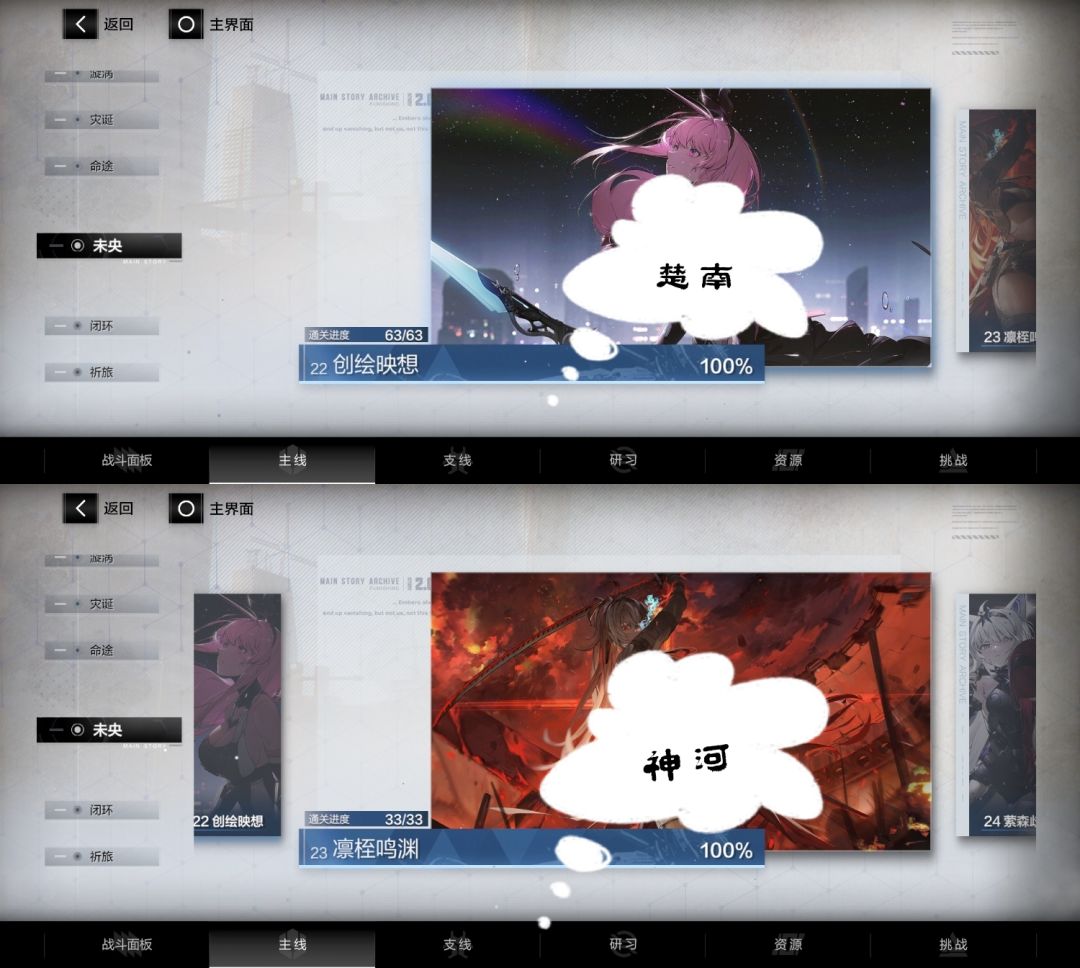 ps:常驻玩法:挑战——多维演绎——宣叙妄想(赛琳娜·幻奏的剧情)在17章后出的,但对主线影响不大