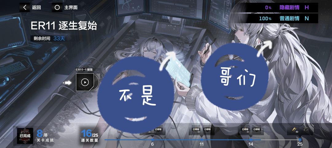 ④以下图为例,有些章节会有"普通剧情"(本章节主线)和"隐藏剧情"(本章节支线),首席们注意当下一章无法解锁时可能就是本章有隐藏剧情还没看完
