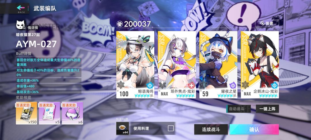 阵容的话,我看了一下别人的,感觉这个阵容不错,鲸鱼焦点小音企鹅,带的三黄金一猪,我涂鸦没肝,很一般,角色收集基本都是零觉,能用就行,不要刻意去氪金抽卡满觉,不值得,家里有矿随意