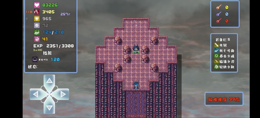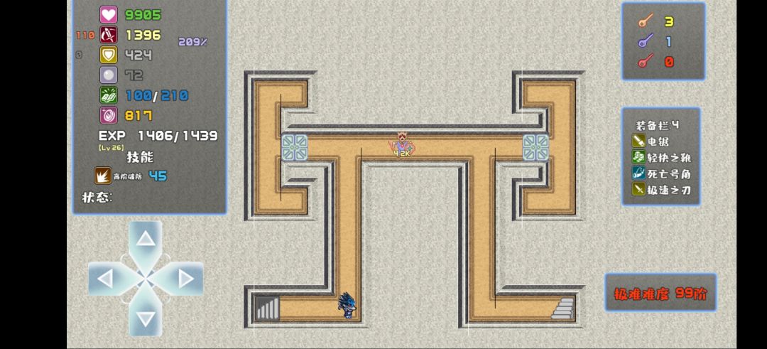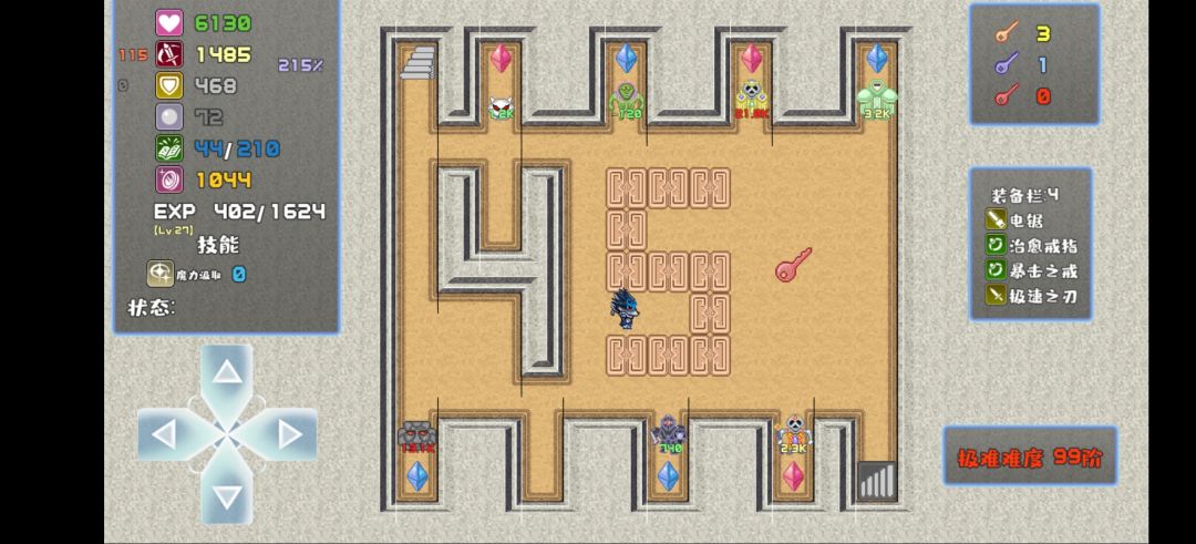 第四区商店也不需要走近道,当然走也可以。我这个属性可以破防秒第一个法师,然后用三个隐身到商店加了12次攻(好像是总之花光金币了)然后后面打满1000金币回头买个电锯很好用。往后走毒怪拦路隐身过不杀能省一个黄钥匙,最后只需要解一次毒。自己看着办吧,后面就不难了,破防大部分怪都能杀,黑武士打不动就留着,黑法师破防能秒,骷髅宝石捡着捡着破防也能秒,最后学高级破防打boss。