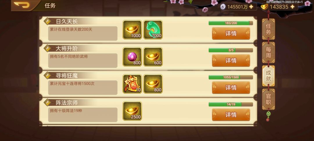 。过麒麟,反吕布,反兔子,肝童渊。新手村我的四大目标,完成一个了,下一步买碎片搞五觉孙仲谋,争取国庆搞定其余三个任务。力争早日拿到童渊神通出新手村,进军天外天。话说神器器魂太缺了,轩辕剑刚刚+10,启灵任重道远呐。