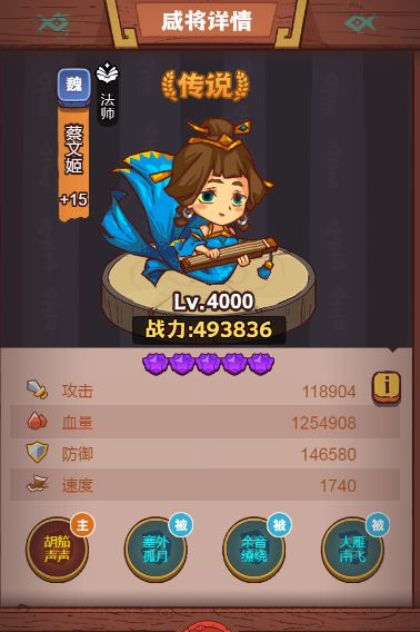 应对策略:蔡文姬控制虽然很强,但没有攻击后排的实力力,所以我们可以通过把吕布放在1-2号位抗伤害,控制武将放在后排,通过用控制打败控制的方式,将其击杀