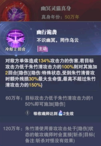 接着朱竹清的武魂真身是为了长图而设,召唤条件为至少有4名队友处于【幽冥印记】状态下即可,召唤4回合真身并替换【幽冥印记】状态为【幽冥之力】,大幅提升真身存在期间的普攻伤害与普攻频率,这个东东目前看起来应该是不能永续存在下去的,所以主要功能应该是一个短时间的爆发。