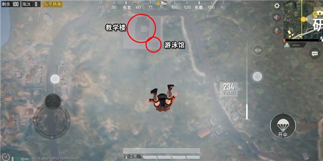 刚刚有说到研究所就两栋楼能选择的落地点也不多,一般的刚抢玩家都会选择教学楼的楼顶,有枪就开打没抢就通过楼顶的天窗去二楼,这里并不推荐大家跳楼顶,风险太大。这里推荐大家跳另一栋楼游泳馆,游泳馆虽然资源并没有教学楼那么丰富,不过也有众多的资源刷新点,一个人搜完还是足够肥的。