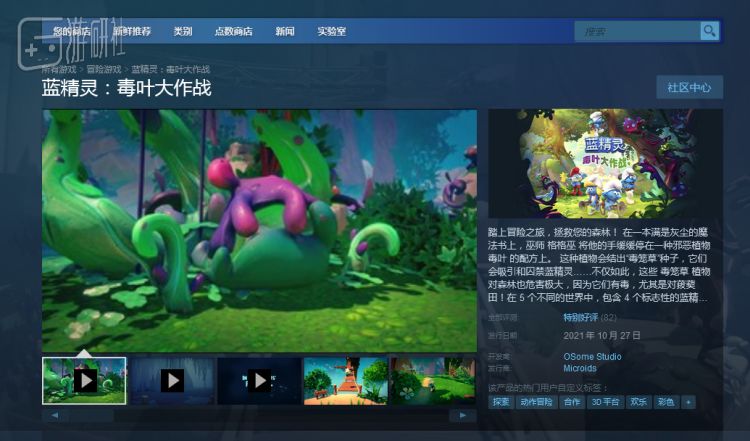 一转眼到了2020年,一家名叫Microids的法国公司宣布获得了《蓝精灵》的游戏改编权,并于次年表示将在未来五年内发行四款《蓝精灵》的改编游戏,公开的第一弹就是《蓝精灵:毒叶大作战》,由法国OSome Studio开发。在Steam上,《毒叶大作战》获得了“特别好评”,在《蓝精灵》的众多改编游戏中有着较为不错的质量。