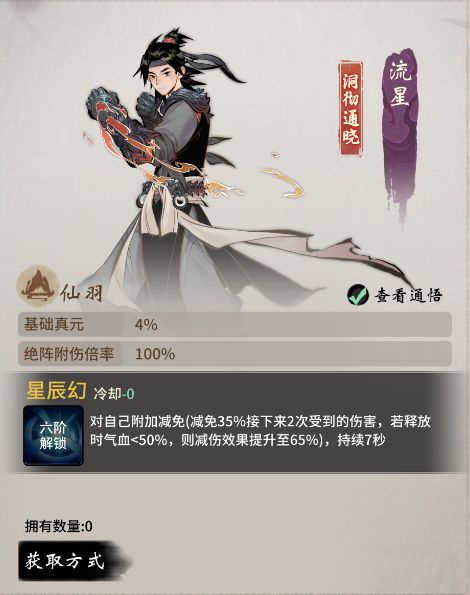 新增仙灵【流星】【流星】:仙族仙灵,联动星辰变出的新仙灵;可通过神游抽取,技能免伤;