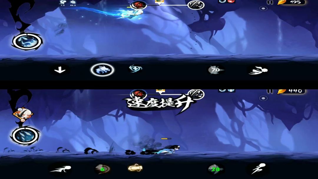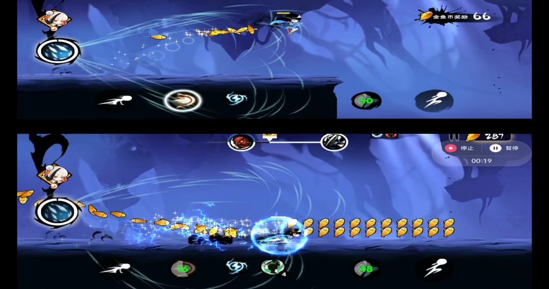 第一组:速度提升前后切流派飘浮的速度对比(上方为“速度提升”后切流派,下方为“速度提升前切流派”),得出了①和②结论