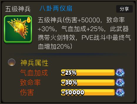 神秘装备分为两大类,一类是神兵,一类是仙器。