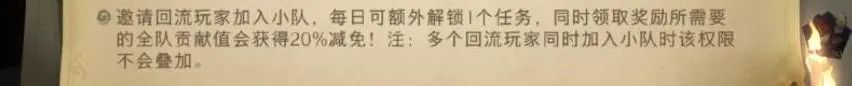 同时战斗小队第二阶段开启,如果队伍中有回流玩家可以直接抵消1200贡献值。