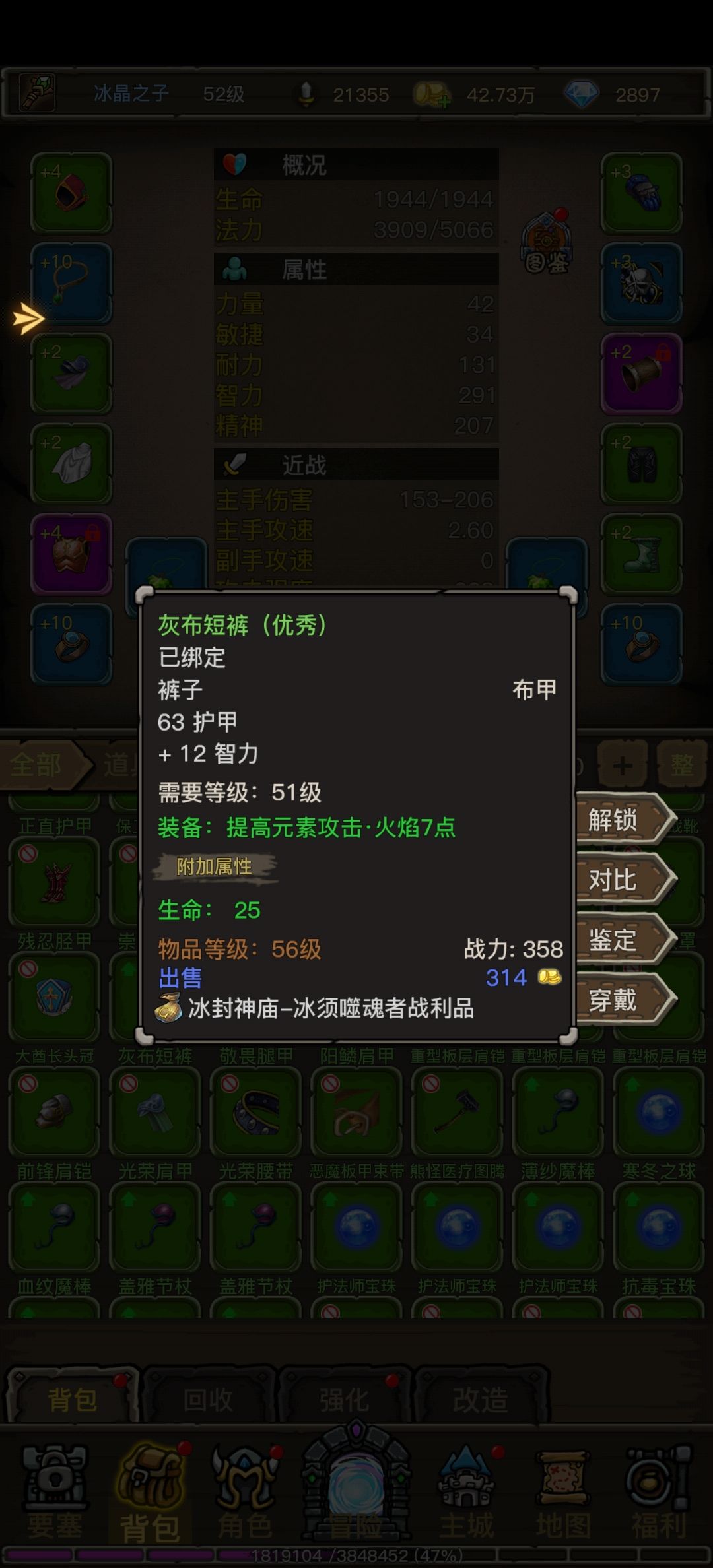 最少蓝色品质因为下面随机词条可以洗一条元素伤害 附带其他属性 比如 全属性 智力 精神 吸取 运气好还有暴击%